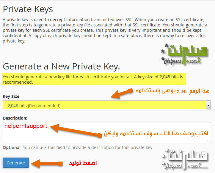 شرح تركيب الشهادة خطوة خطوة كثيرا تقوم شركات الاستضافة عند شرائك للشهادة SSL منهم تقوم هى بتفعليها لك لكن شرحنا اليوم في حال لم تقم بذلك اتبع الخطوات بالتفصيل لتفعيل الشهادة بنفسك بعد شراءها: فى البداية يجب عليك انشاء كلا من الـ CSR والـ KEY وذلك لإنشاء شهادة الـ SSL 1- نقوم بالدخول علي لوحة تحكم Cpanel الخاصة بموقعك ثم نبحث عن SSL/TLS وستجدها موجوده تحت مجموعة Security كما هو موضح بالصورة: 2- نقوم بالضغط على private keys كما هو بالصورة وذلك لانشاء كود الـ key ثم اضغط نوليد كما بالصوره سنحصل على كود قم بحفظة فى ملف تكست txt لانك ستحتاجه 3- عادو الان الدخول مره اخرى الى SSL/TLS واختار منها Certificate Signing Requests (CSR) قك بإدخال البيانات كما هو موضح بالشكل الأتي ثم نضغط في الأخير علي Generate ليتم توليد المفاتيح اللازمه لإنشاء شهادة SSL سنجد أنه تم توليد الـ CSR كما هو بالصور نقوم بحفظ ما بداخلها داخل ملف نصي Notepad أو word طريقة الحصول على كود CRT الان سننتقل الى قائمة SSL المتواجده في حسابك على Namecheap.com شباب ده مثال للشرح هى شركه كويس فى بيع شهادات SSL بس انت برحتك المهم نرجع لموضوعنا دخلنا على الصفحة انقر على تنشيط الآن للحصول على شهادة التي اشتريتها كما بالصوره هنا قم باختيار نوع السيرفر ثم قم بوضع كود CSR سيطلب منك اختيار البريد الإلكتروني كما هو مبين بالصورة. هنا تم التاكد من البريد سيقوم بارسال كود تحقق بعدها سيتم ارسال كود CRT نعود الان مره اخرى الى سى بانل ثم الى SSL/TLS ونحتار Certificates (CRT) كما بالصورة قم الان بوضع الكود الخاص بى CRT واللى تحصلنا عليه من الشركة اللى اشترينا منها الشهادة قم ذكرت بالاعلى ارجع مره اخرى الى SSL/TLS وقم بالضغط على install and manage ssl ثم افعل كما تشاهد بالصوره والان مبروك عليك كود اعادة توجية جميع الروابط حتى تكون HTTPS//: كود: