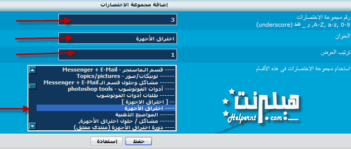 ولو عايز تضيف بادئات آخري فى قسم الأاختراق أعمل إضافة إختصار مرة أخري